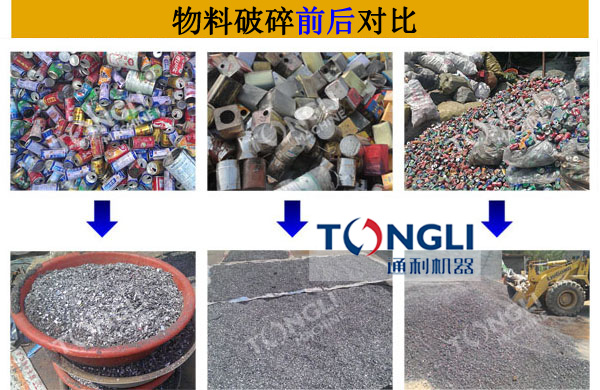 小型易拉罐粉碎機(jī)可處理物料包括:易拉罐,露露罐,紅牛罐,鐵罐,鋁罐,啤酒罐,花盒,油漆桶,轉(zhuǎn)子,定子,鐵屑,輕薄料等廢金屬,型的易拉罐破碎機(jī)也可以處理廢鋼,廢鐵,彩鋼瓦,鐵皮,汽車殼,發(fā)動(dòng)機(jī),輪轂,廢舊家電等物料,用戶只需告訴我們您廠區(qū)的待處理料即可,我們便能快速的為您提供出生產(chǎn)方案,為您搭配合適的生產(chǎn)線,并為您提供產(chǎn)品的報(bào)價(jià)。